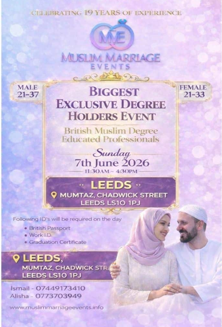 This event is specifically organised for individuals who hold a degree and are looking to meet others with a similar level of education and ambition. It creates a focused space for British Muslim professionals Leeds who value both personal growth and faith.